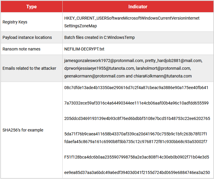 INDICATORS OF COMPROMISE — Nefilim Ransomware