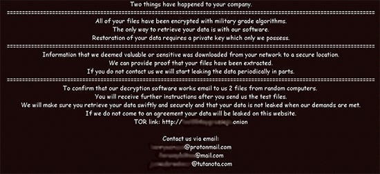 - The ransom note contains different contact emails for contacting its operators. It also includes a line that warns victims of leaking their data if the ransom is not paid within seven days.
