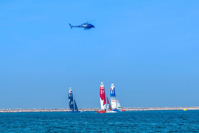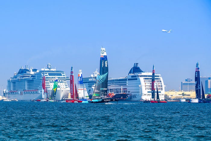 Dubai; 12th December 2023: In the heart of the action at Mina Rashid, Dubai, SailGP, one of the world’s fastest-growing sport leagues, made a triumphant return to the Emirates presented by P&O Marinas.