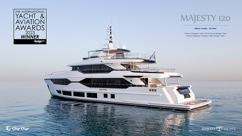 Gulf Craft’s Majesty 120 Superyacht, has been named the winner in the ‘Motor Yacht 25–40 Metres’ category at The International Yacht & Aviation Awards 2023.