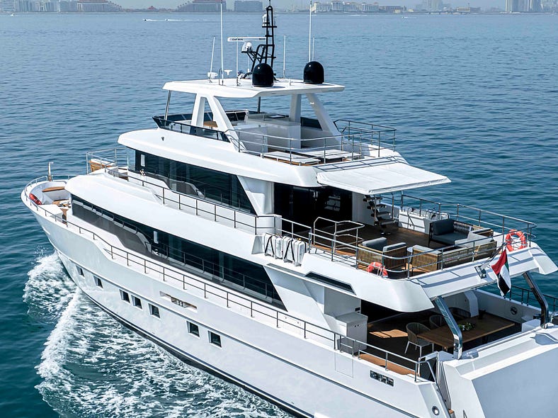 The Nomad 101 embodies Gulf Craft’s dedication to innovation, performance, and unmatched luxury. Measuring 31 meters in length, the superyacht offers ample space for entertaining guests and provides a seamless blend of indoor and outdoor living, perfect for exploring the Australia’s coastlines. Boasting a contemporary design and state-of-the-art technology, the Nomad 101 delivers unmatched comfort and performance, making it the ideal vessel for both leisure and adventure-seeking individuals. With sustainability taking centre stage onboard, she features a smart hull design that leads to fuel efficiency along with an array of innovative sustainable materials throughout.