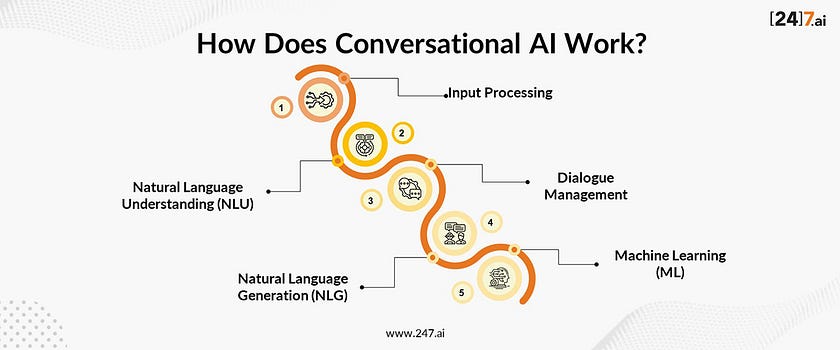 Conversational AI systems operate through a sophisticated, multi-stage process designed to simulate human-like interactions: